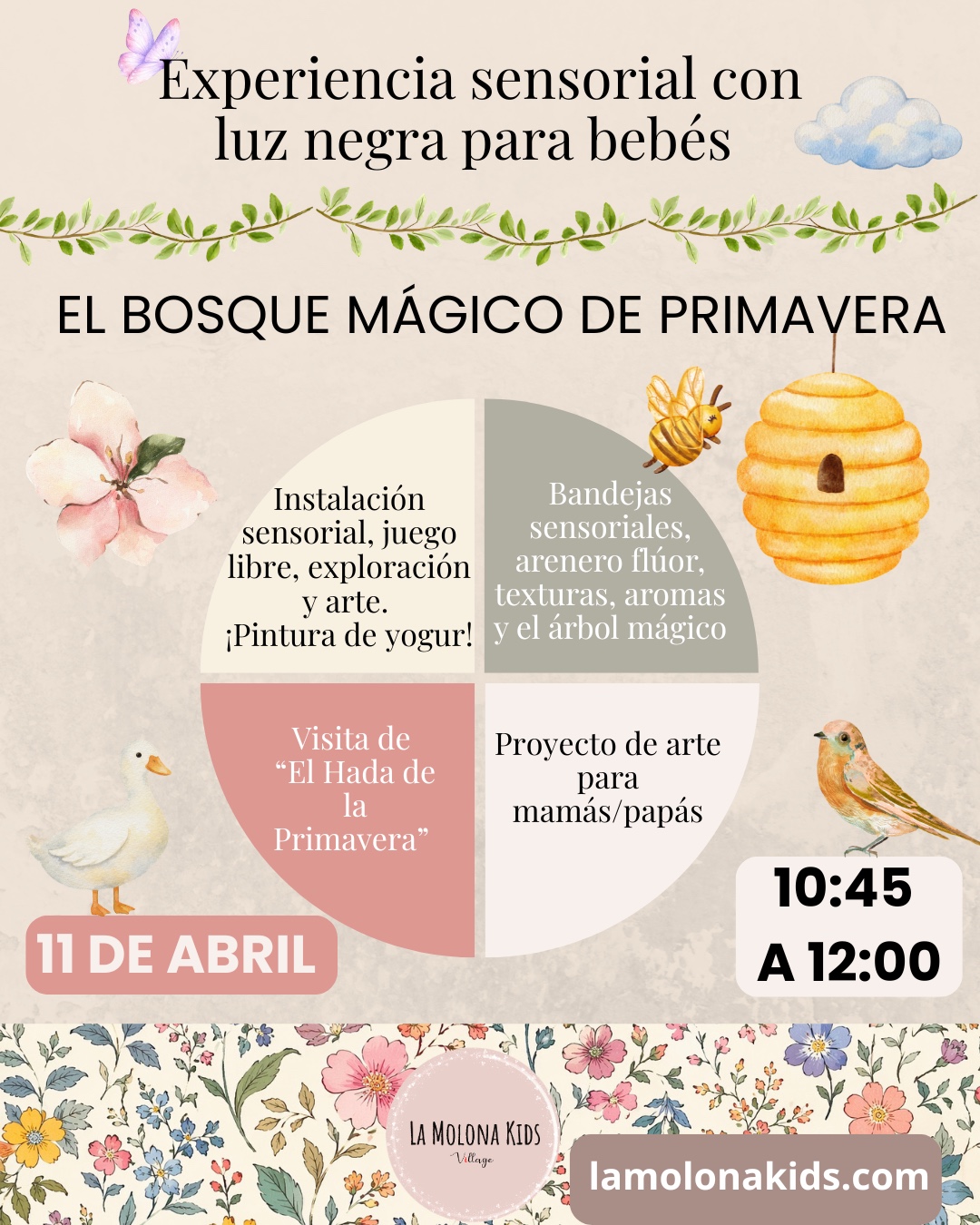 Experiencia sensorial con luz negra para bebés "El bosque mágico de Primavera"
