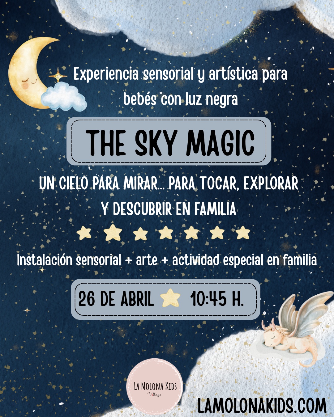 THE SKY MAGIC forma parte de una serie de experiencias que estamos construyendo poco a poco. Cada una tiene su propia identidad, pero todas parten de la misma idea: crear espacios cuidados al detalle donde los bebés puedan explorar de verdad y donde las familias estéis dentro de ese momento.