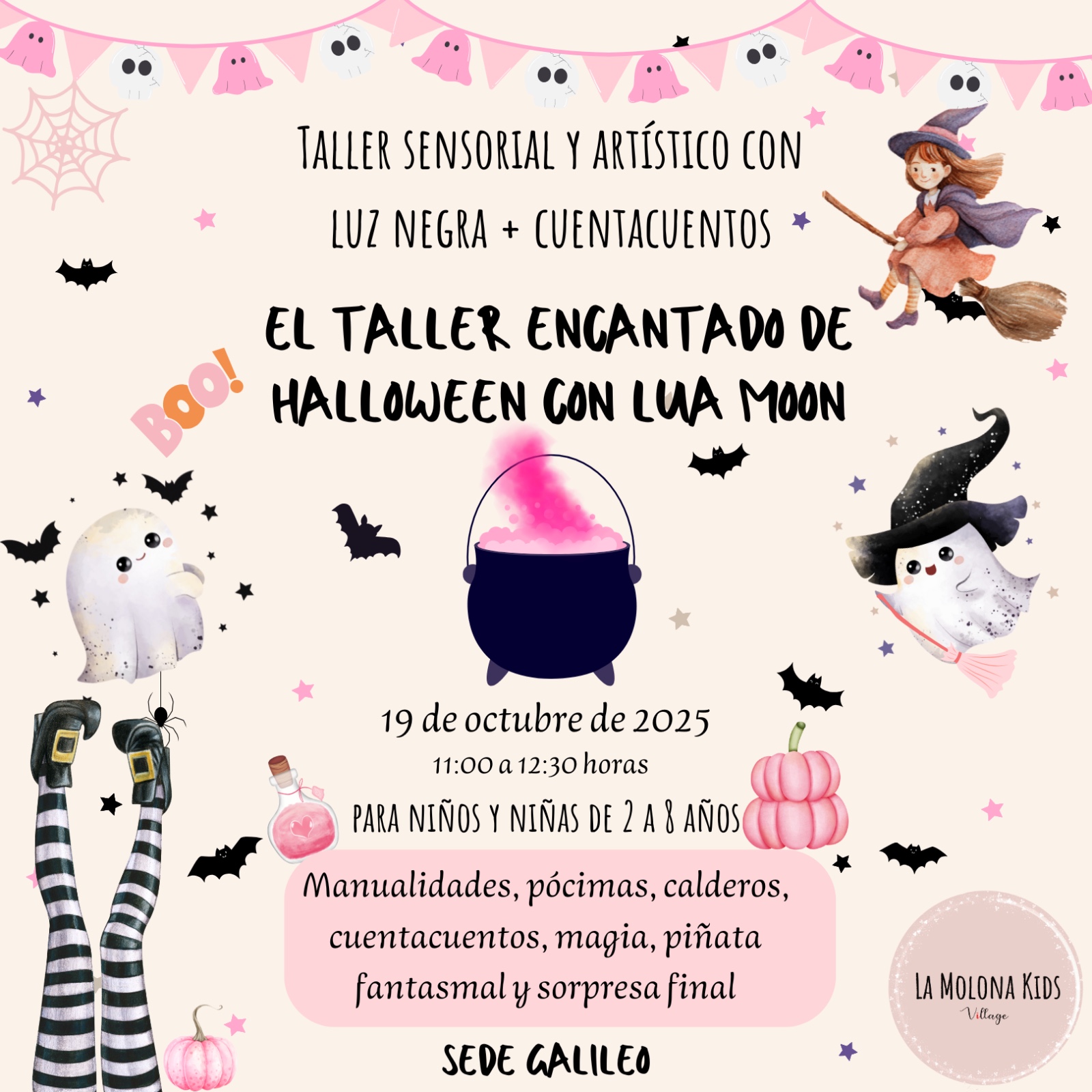 Soy Lua Moon, la bruja más molona del barrio (aunque a veces me exploten los calderos). Este año he preparado algo que ni los fantasmas más glamurosos se quieren perder… ¡mi Taller Encantado de Halloween!